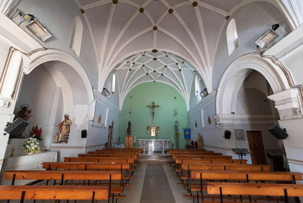 La iglesia parroquial es obra de sillería, tapial y ladrillo, de una nave con capillas laterales, cabecera plana orientada al norte, coro alto a los pies, y torre que escasamente destaca en planta en el ángulo sureste. La nave se divide en tres tramos, y está cubierta con bóvedas estrelladas. Las capillas laterales y la sacristía tienen bóveda de lunetos. La fachada no cuenta con ningún tipo de decoración, y la puerta de acceso se cubre con tejadillo a tres aguas de teja árabe. La torre se encuentra a los pies del templo en el lado de la epístola. Es de dos cuerpos de planta cuadrada, de sillería y rehecha tras la guerra civil española.