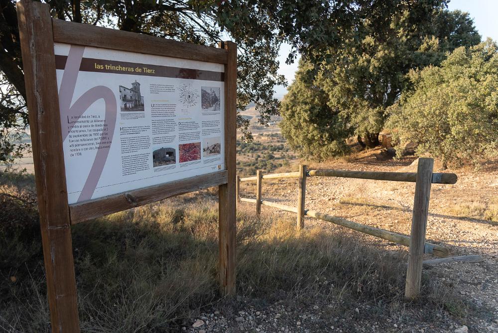 Una forma de disfrutar de los diferentes puntos de interés en Tierz es a través de la Ruta de las Trincheras, que aúna la visita al Camino Real, la Caseta Redonda, la Ermita de Santa Cruz, la fuente del Juncaral y las trincheras de los Sasos, desde el Tozal de la Miseria hasta prácticamente la cruz de los caídos en el Estrecho Quinto, ya en el término de Loporzano. En la parte intervenida se han colocado vallas, escaleras de acceso y pronto se procederá a la señalización y establecimiento de paneles informativos, aunque el proyecto va mucho mas allá ya que en torno a él se quiere lanzar un ambicioso programa de actividades en las que tenga cabida la puesta en valor del patrimonio natural, paisajístico y etnográfico del municipio